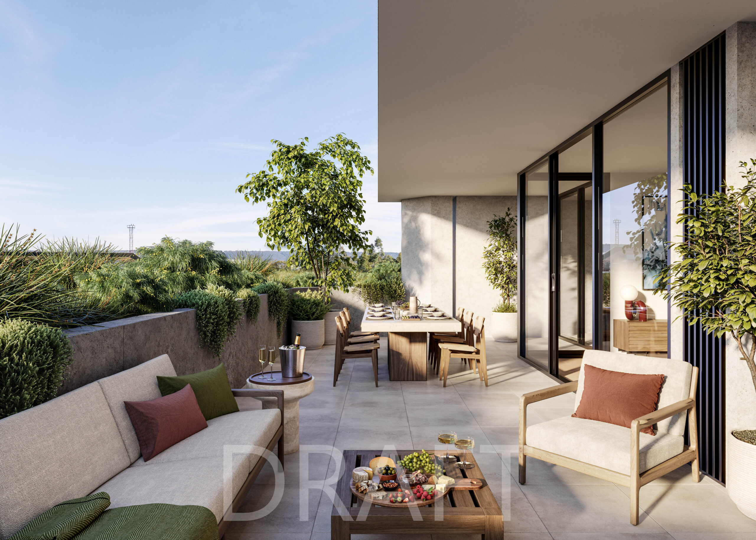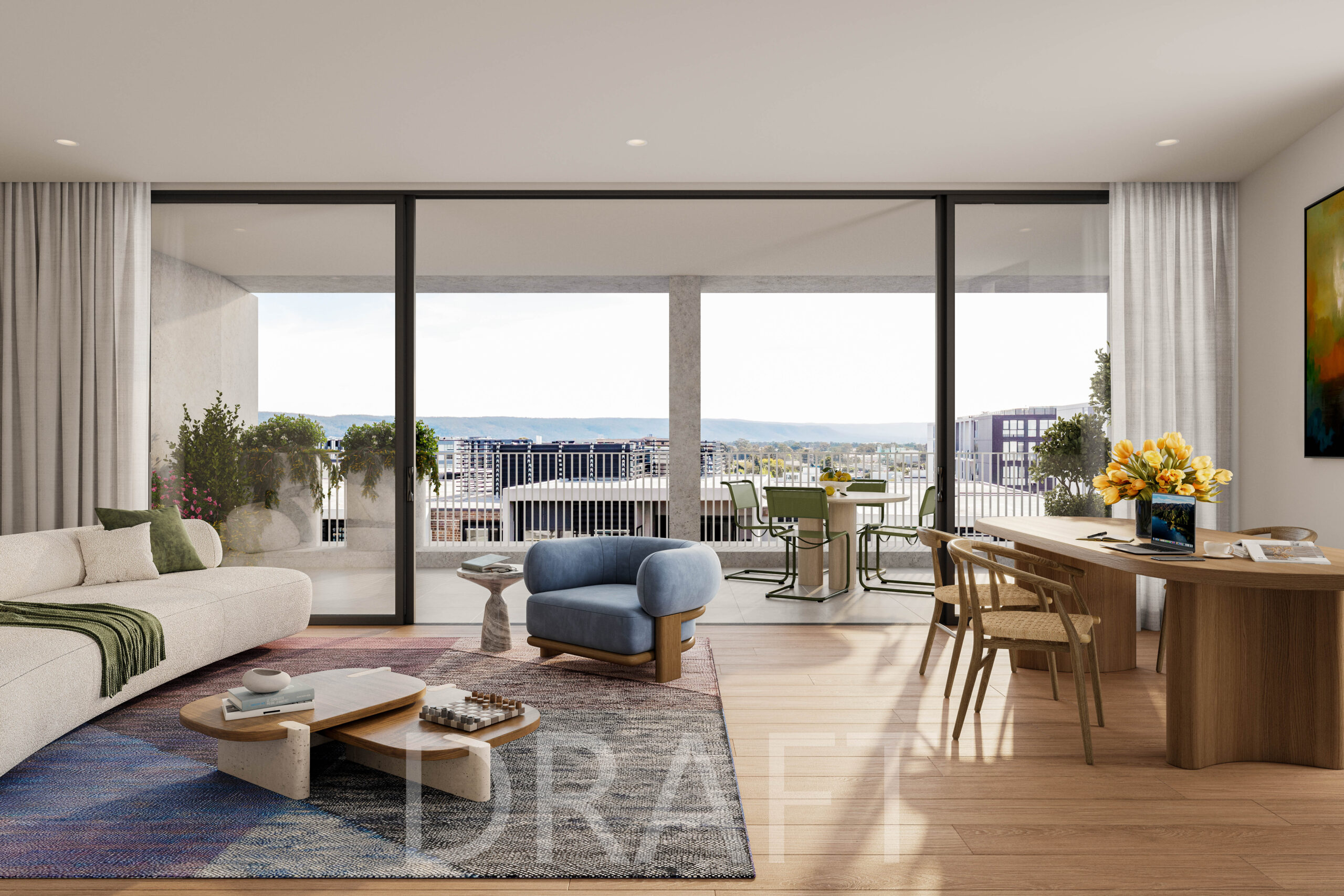 Mayfair’s extensive communal rooftop offers residents a place to escape the summer heat with a dip in the pool or be able to watch the sun set over the Blue Mountains. The rooftop pool brings a playful feel to the high end amenity, providing a retreat from the busyness of the town centre, while activations of the space will create an intimate sense of community. Mirroring its scenic offerings, Mayfair will redefine Penrith’s skyline – signifying a new era of urban elegance.