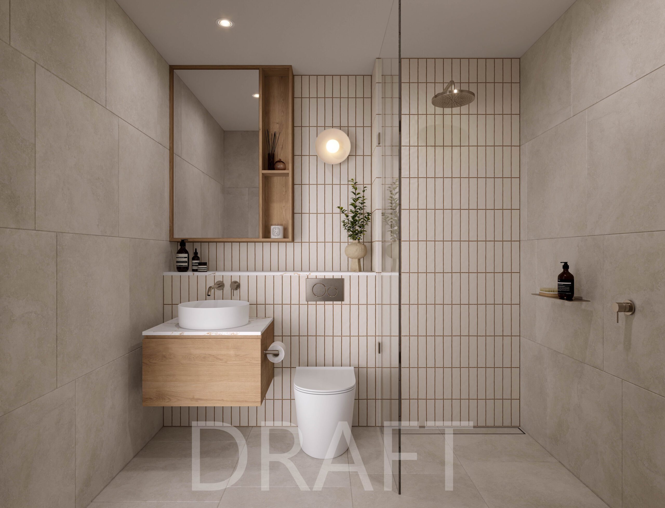 Each feature, from the sleek, wall-mounted vanity, to the frameless mirror has been hand-selected to turn daily routine into a restorative ritual, with soft, natural lighting enhancing the tranquil ambiance.